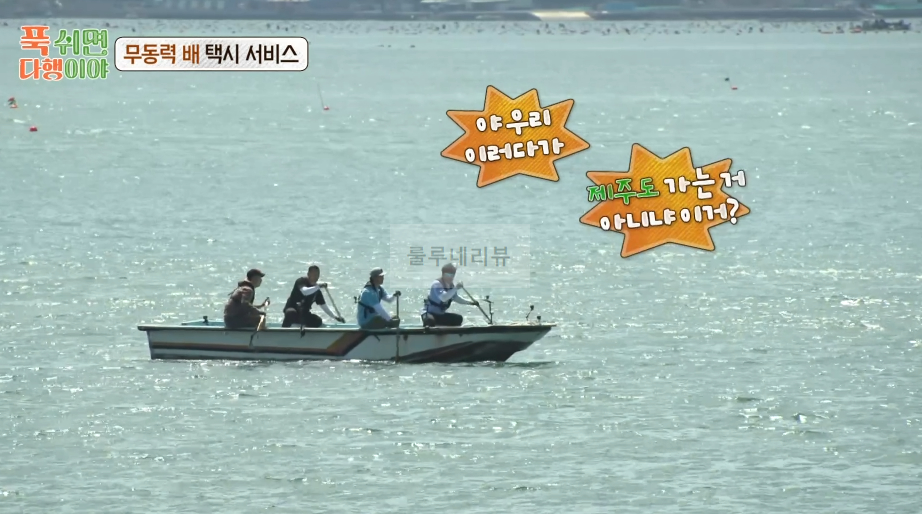 2024년 7월 1일 밤 9시 푹 쉬면 다행이야 방송에서는 역대급 체력의 운동부 성흔, 원희, 희관, 남일이 무인도를 찾았어요. 푹다행에 온 손님들은 무동력 배 택시 서비스를 이용해서 무인도 맞은 편에 위치한 낚시 스팟에서 낚시를 하기로 합니다.