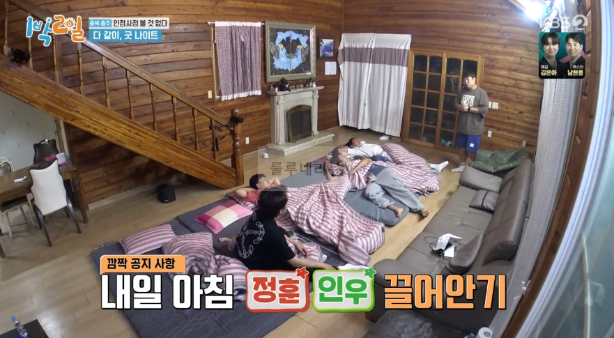 1박2일 기상송으로 나온 연정훈 1집 ALL FOR YOU가 올려퍼집니다. 1박2일 충북 충주 편에서 멤버들이 머문 베이스 캠프 숙소의 전경입니다.
