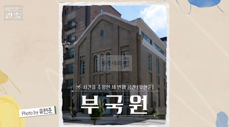 2024년 8월 14일 수요일 밤 9시 <시간을 초월한 공간 이야기: 이유 있는 건축> 건축 여행 토크쇼 방송에서는 시간을 초월한 세 번째 공간 유현준은 수원에 위치한 부국원을 가기로 합니다.