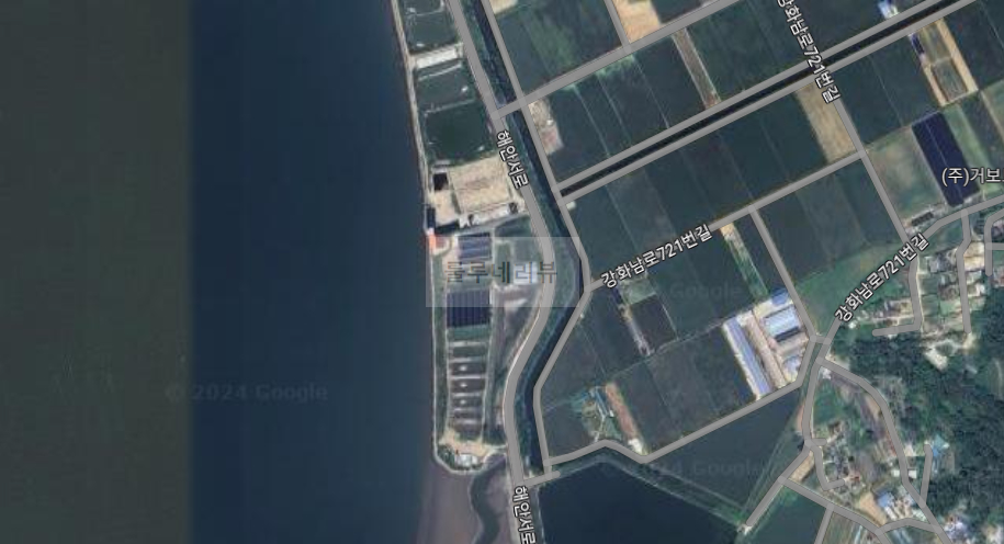 회장님네 사람들에서 갯벌 장어를 잡은 곳은 위 지도에서 해안서로 바닷가쪽에 위치한 장어 양식장입니다.