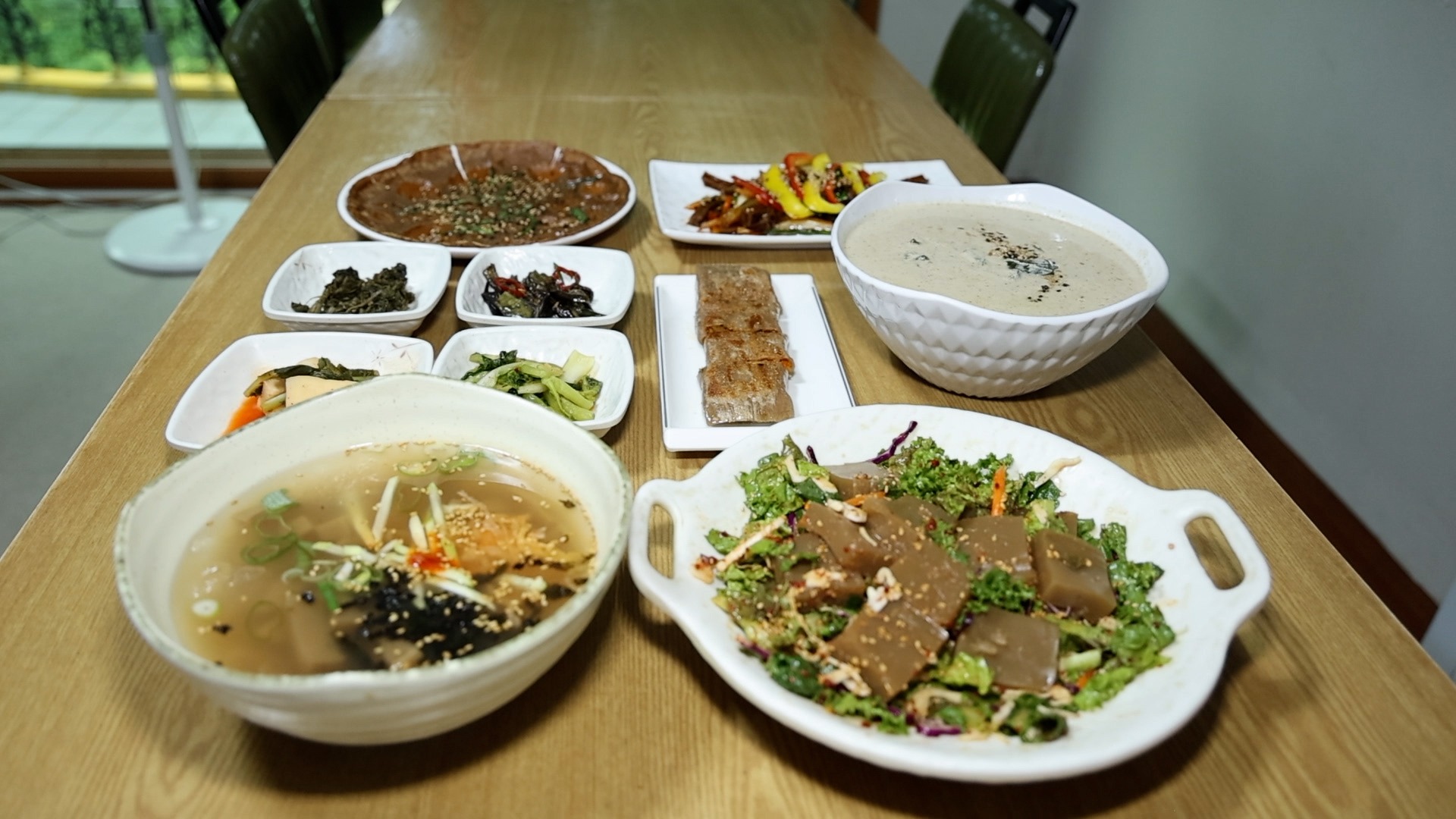 도토리부침개, 묵무침, 들깨수제비, 도토리전병, 묵탕밥