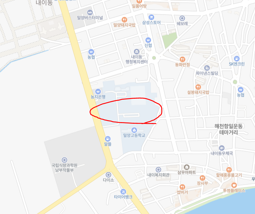 밀양대 캠퍼스 입구가 있는 곳의 주소예요.