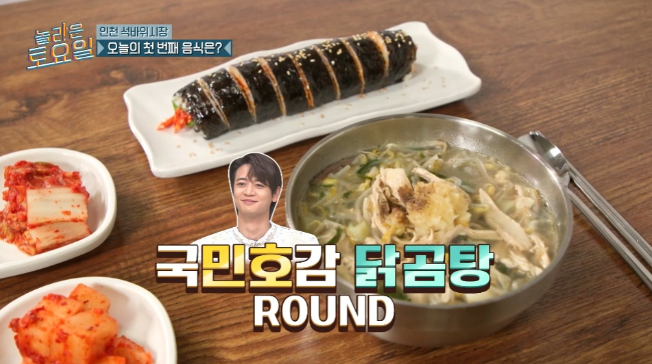 2024년 11월 2일 토요일 저녁 7시 40분 놀라운 토요일 놀토 방송에서 오랜 전통을 보유하고 있는 인천 최초의 전통시장 인천 석바위시장 편이 방영되며, 샤이니 민호와 예원, 오마이걸 승희가 게스트로 출연, 닭곰탕(닭무침김밥)과 정통 토스트, 문어숙회를 걸고 퀴즈대결을 펼칩니다. 첫 번째 음식은 닭곰탕과 닭무침 김밥을 파는 식당이 소개되어 찾아보았어요. 국민호감 닭곰탕 ROUND