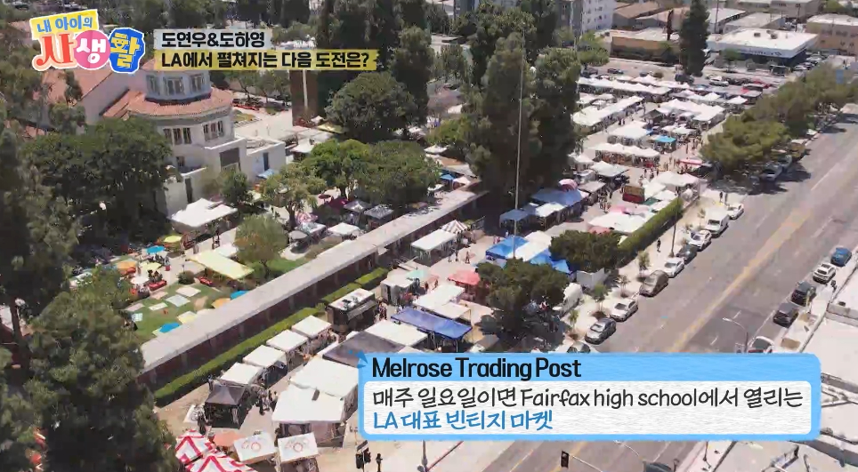 2024년 9월 28일 토요일 저녁 8시 30분, <내 아이의 사생활> 방송에서는 도연우 도하영 도도 남매의 미국 LA 여행 이야기가 공개됩니다. 미국 LA에서 Melrose Trading Post라는 매주 일요일이면 Fairfax high school에서 열리는 LA 대표 빈티지 마켓입니다.