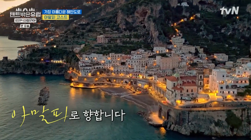 2024년 10월 31일 목요일 저녁 8시 40분 라미란, 곽선영, 이주빈, 이세영의 <텐트 밖은 유럽 로맨틱 이탈리아> 방송에서는 텐트 밖은 이탈리아 편이 방영되며, 스머프 마을 알베로벨로(Alberobello)의 250년 버섯 모양 지붕 전통가옥 트롤리에서 숙박을 하기로 하고 이탈리아에서 인생 일몰을 찾아 고대도시 마테라(Matera)로 인생 노을 일몰 석양을 보러 다녀왔어요. 가장 아름다운 해안도로 아말피 코스트(Costiera Amalfitana)로 향합니다.