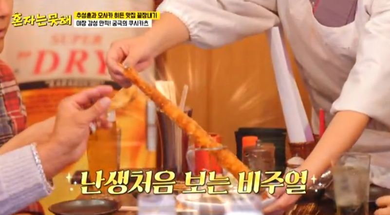 신사이바시 대왕 새우튀김 맛집 2026년 3월 17일 화요일 저녁 8시 50분 <혼자는 못해> 방송에서는 오사카 출신 추성훈과 오사카 히든 맛집 끝장내기 편이 방영됩니다. 세 번째 맛집은 일본 오사카 신사이바시에 위치한 쿠시카츠 맛집이 소개됩니다. 쿠시카츠는 오사카의 명물, 꼬치 튀김으로 반죽이 얇고 즉석에서 튀겨 먹는 것이 기본이며, 약 50여 종의 신선하고 다양한 재료를 주문 즉시 튀겨주는 곳이라고 합니다. 특히 이 곳은 대왕 새우튀김이 이곳의 명물(시그니처)라고 합니다.