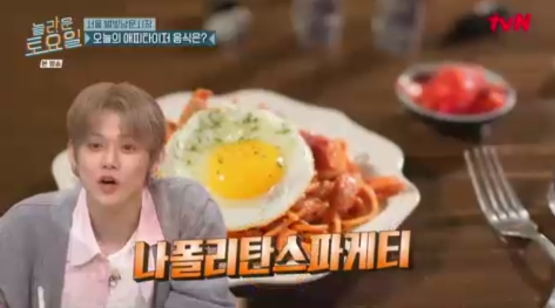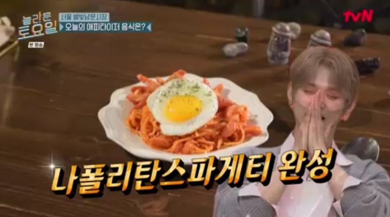 2026년 3월 28일 토요일 저녁 7시 40분 <놀라운 토요일 410회> 놀토 방송에서는 투모로우바이투게더(TXT)의 메인 댄서 연준, 갓벽 리더 수빈, 매력보이 범규가 게스트로 출연하여 음악 퀴즈 대결을 펼칩니다. 서울에서 즐기는 전 세계 음식, 이제는 글로벌 시장이 대세, 서울 별빛남문시장 편이 방영됩니다. 서울 별빛남문시장의 스파게티와 순대전골, 두쫀쿠(두바이쫀득쿠키)가 소개됩니다. 서울 별빛남문시장은 서울 금천구 독산동에 위치한 상설시장입니다. 애피타이저로 소개된 음식은 나폴리탄스파게티입니다. 문어모양 소세지와 달걀후라가 올라간 스파게티 ROUND가 펼쳐집니다.