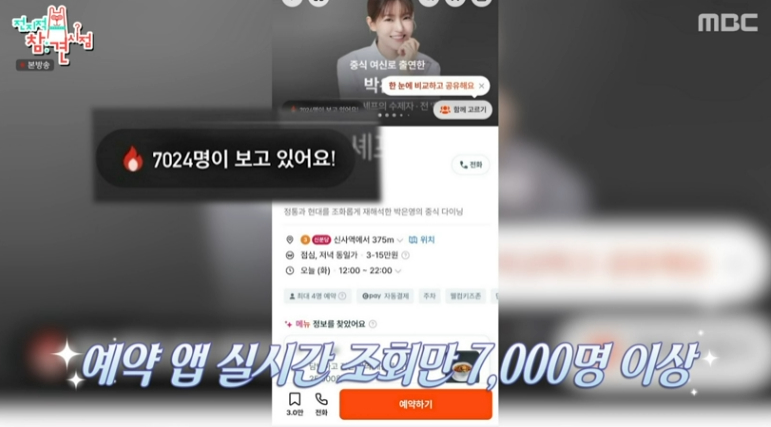 2026년 3월 28일 토요일 밤 11시 10분 <전지적 참견 시점(전참시)> 391회 방송에서는 박은영 셰프와 윤준원 헤드셰프의 일상이 공개됩니다. 박은영의 레스토랑 예약 앱 실시간 조회만 7,000명 이상으로 인기를 끌고 있다고 합니다.