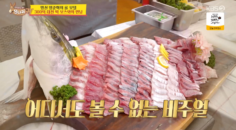 2026년 3월 29일 일요일 오후 4시 40분 사장님 귀는 당나귀 귀 (당나귀귀, 사당귀) 350회 방송에서는 방신 양준혁의 롤 모델, 300억 대전 빅 보스와의 만남 편이 방영됩니다. 대전에서 최대 규모의 수산업체를 운영하는 이진규 대표가 운영하는 곳이 소개되었어요. 1층에는 수조가 40개 정도 있으며, 2층에는 직영하는 횟집이 있는데, 연일 만석이라고 합니다.