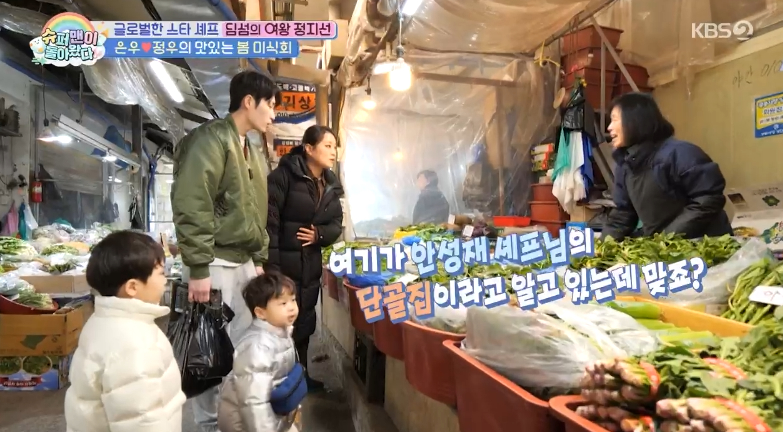 김준호와 은우, 정우 그리고 정지선 셰프는 재래시장에서 봄 미식회를 위한 제철 식재료들을 사기로 합니다. 서울 동대문구에 위치한 경동시장입니다. 오늘 방송에서 정지선 셰프는 안성재 셰프의 단골 나물가게에서 제철나물들을 가득 샀답니다.