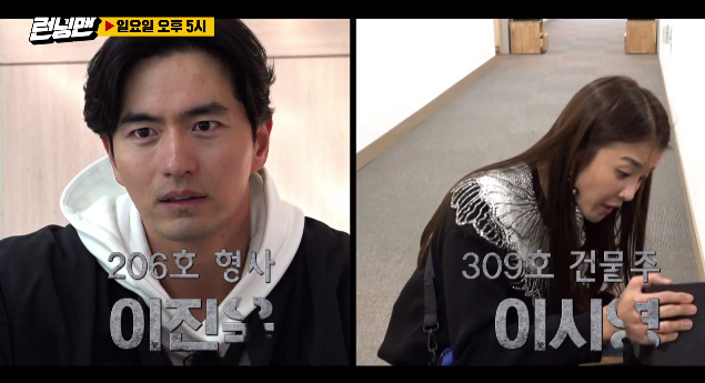 오늘 레이스에는 <스위트홈> 4명의 주연배우가 출연, 옴므파탈 이진욱, 액션도 예능도 소화력 갑인 넘사벽 걸크러쉬 '여자 마동석' 이시영, 예능둥이 송강, 런닝맨이 키운 스타 이도현이 게스트로 출연합니다. 이진욱은 206호 형사, 이시영은 309호 건물주, 이도현은 305호 고시생, 송강은 210호 배우 지망생 역할로 출연합니다.