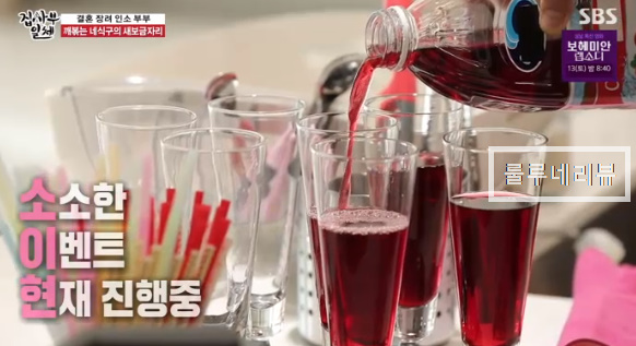 인교진이 웰컴 이벤트로 크랜베리를 이용한 음료를 준비하고 있어요.