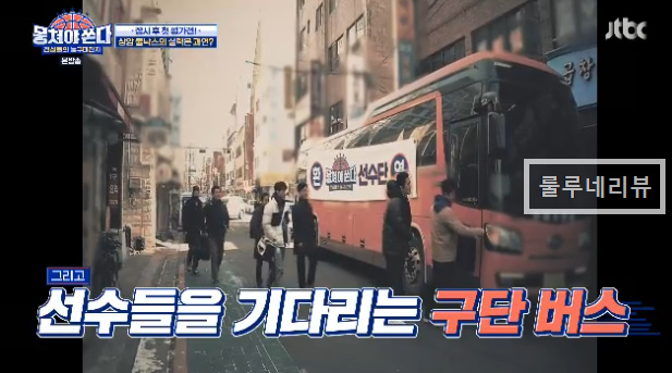 중국집에서 식사를 마치고 구단 버스를 타고 상암 쿨낙스 실력 평가를 위해 농구장으로 향합니다.