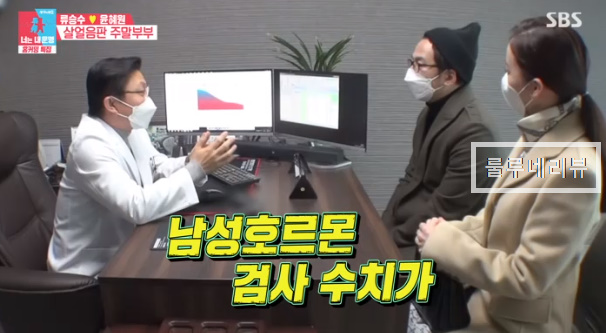 2021년 2월 8일 월요일 밤 11시 15분 <동상이몽2 너는 내운명> 방송에서는 류승수와 윤혜원 주말부부의 일상이 공개됩니다. 류승수는 아내 윤혜원과 갱년기때문에 남성 호르몬 검사를 했었고, 갱년기 관련 상담을 합니다.