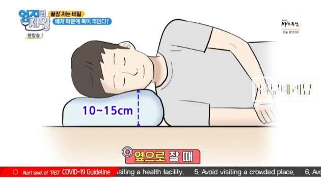 C자 목이 되도록 높이를 조절해서 높이에 맞는 베개를 이용해야 합니다.