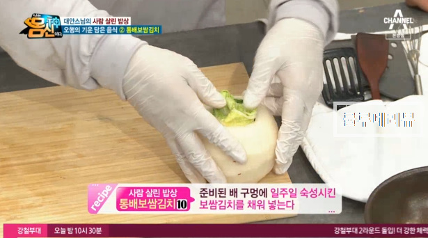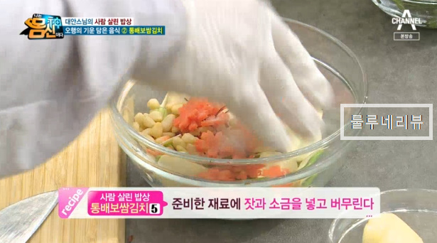대안 스님은 30년 넘게 사찰음식을 연구, 사찰음식 명장으로 지정된 분이라고 합니다. 대안스님의 사람 살린 밥상 레시피 저장해 보았어요. 대안스님은 두 번째 오행밥상으로 통배보쌈김치 만드는 법을 공개했어요.