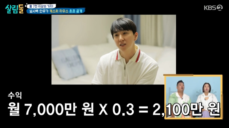 살림돌 캐스퍼 하우스 아파트 집 최초 공개! 월 7천 이상의 가치 넘사벽 안무가, 월세 120? 200?