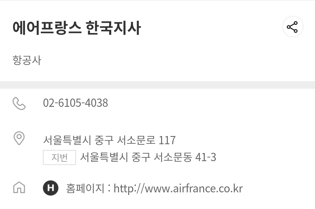 에어프랑스 한국지사 고객센터 전화번호 위치