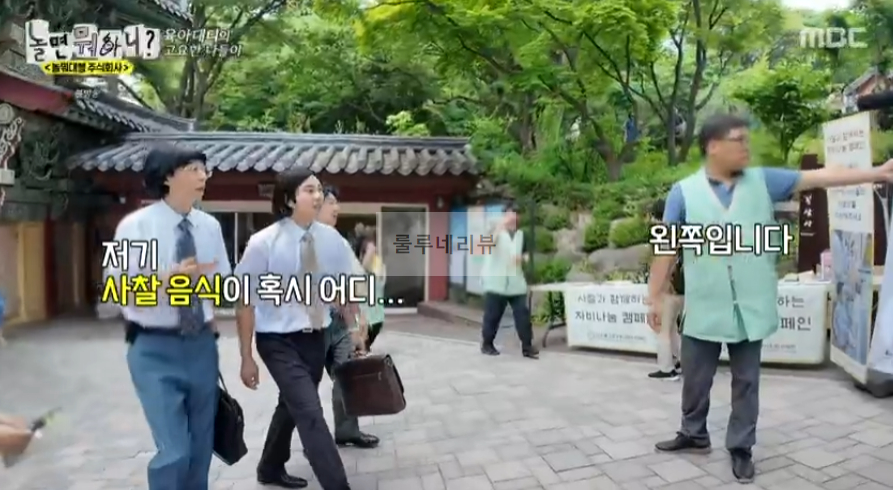 유재석과 이이경, 하하는 사찰안에서 사찰음식을 먹을 수 있는 곳을 찾아나서는데, 사찰밥을 먹을 수 있는 식당에도 사람들이 너무 많았어요.