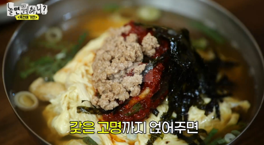 2024년 7월 6일 저녁 6시 25분 놀면 뭐하니? 방송에서는 미주와 함께 하는 옥천에 가면 편이 방영됩니다. 놀면뭐하니 미주와 멤버들은 옥천에서 유명한 물쫄면을 먹기 위해 한 분식집을 찾았어요. 식객 허영만의 백반기행을 비롯 생활의달인 다양한 맛집 소개 프로그램에 소개되었을 정도로 옥천에서는 물쫄면이 유명하다고 합니다. 유재석은 이거 약간 우동 국물 맛이네?! 가락국수! 라며 맛평가를 하고 정말 맛있다며 면치기까지 선보였어요.