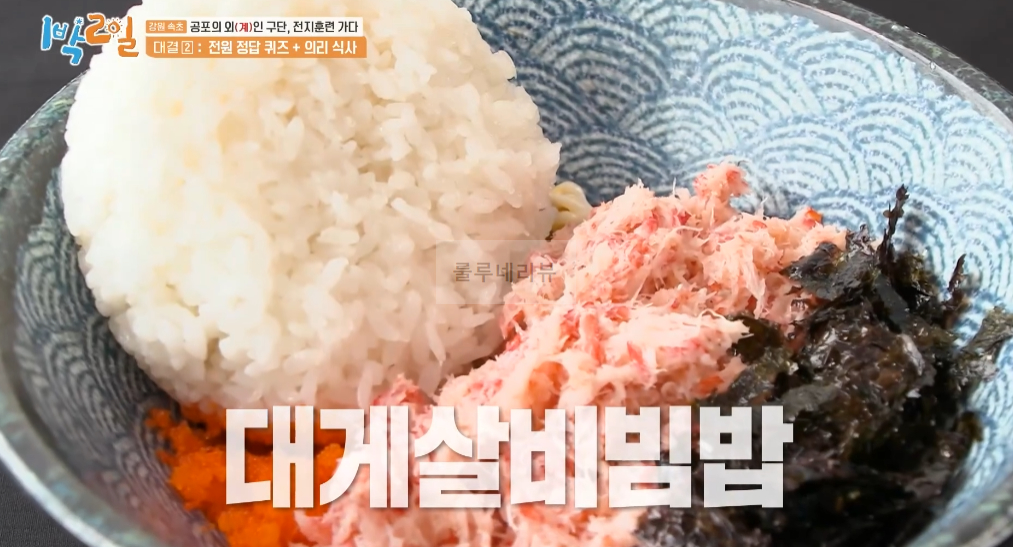 대결2 전원 정답 퀴즈 의리 식사에서 세 번째로 걸린 음식은 대게살비빔밥이예요.