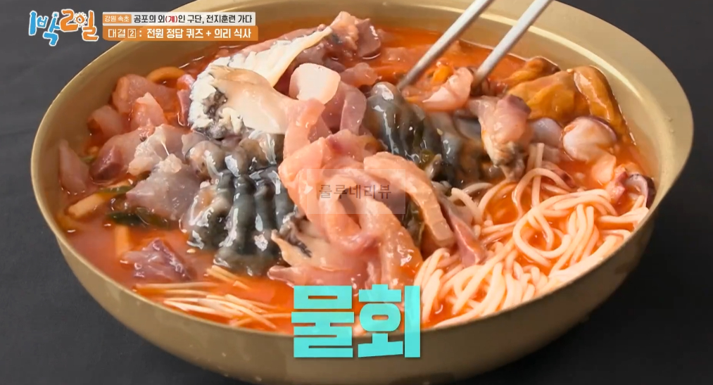 그리고 강원도 속초에 가면 꼭 먹어야 한다는 물회를 걸고 퀴즈 대결을 합니다.