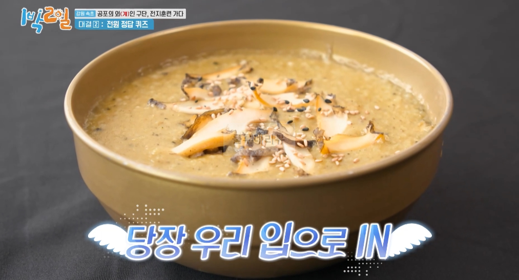 대결 2 전원 정답 퀴즈에서 첫 번째로 건 것은 전복죽이예요.