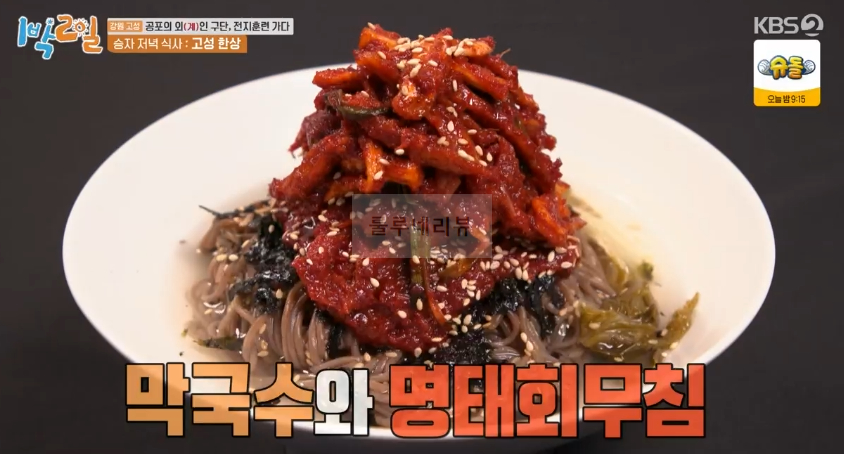 KBS2 방송 1박2일 시즌4 233회 강원 고성 강원 고성 한 상, 해신탕, 대문어숙회, 막국수, 명태회무침, 소고기채소말이