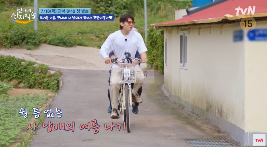 덱스가 박준면과 함께 자전거를 타고 동네를 다니며 여름 나기 하는 모습