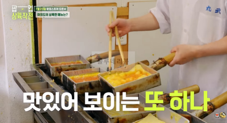 2024년 7월 20일 토요일 밤 10시 35분 <팝업상륙작전> 방송에서는 박세리, 하석진, 브라이언, 김해준, 곽튜브, 아스트로 MJ는 직접 현지의 맛집을 찾아다니며 음식을 맛보고, 식당의 셰프를 직접 한국에 초대해 팝업스토어를 여는 과정이 소개됩니다. 일본팀에서 정한 팝업스토어 타깃 메뉴로는 일본 도쿄 츠키지 시장에 있는 마*타케 달걀말이 입니다.