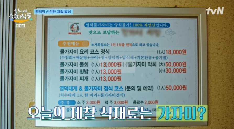 tvN 언니네 산지직송 4회 영덕의 신선한 제철 밥상 먹은 식당 어디?
