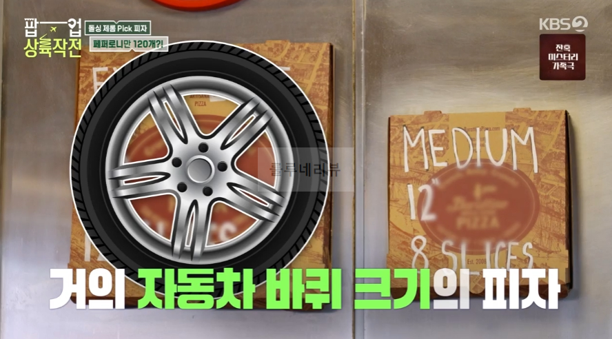 페페로니만 120개 화덕 피자, 돌싱 제롬 pick 피자 가게의 라지사이즈는 자동차 바퀴 크기라고 합니다. 18인치 피자
