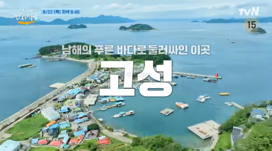 언니네 산지직송 멤버들이 고성에서 만난 항구의 모습이예요. 이 항구에 있는 식당에서 식사를 하며 오프닝 촬영을 합니다.