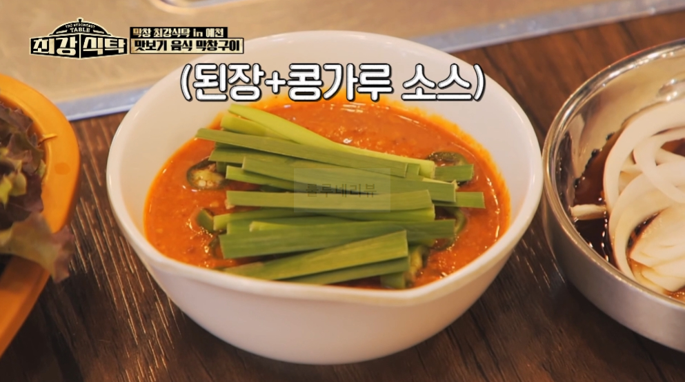 최강식단 예천 막창구이집 막창 소스 중 하나는 된장 + 콩가루 소스