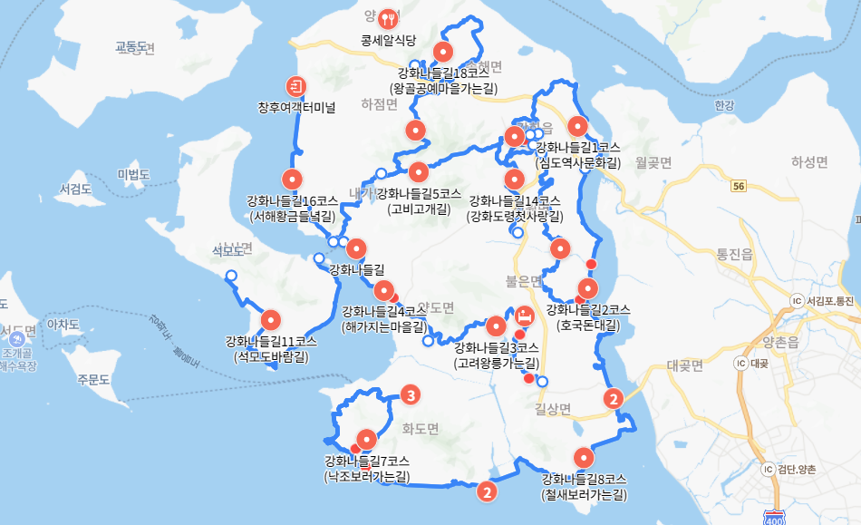 인천 강화도 나들길 코스 지도