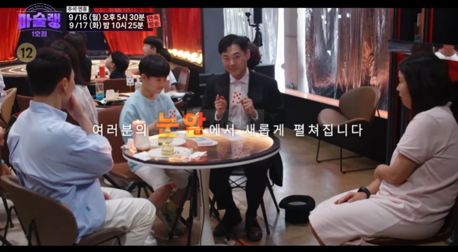 2024년 9월 16일 월요일 17시 30분 <마술랭 1호점> 방송에서는 마술사 루이스 데 마토스, 유호진, DK, 에덴, 박준우, 한설희, 패트릭 쿤가 환상의 섬 제주도 카페에서 마술 카페를 오픈했어요.