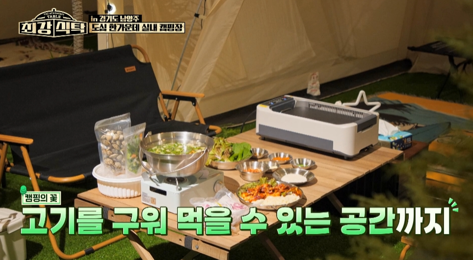 최강식탁 남양주 실내 캠핑장 바비큐 한 상 항정살 한우 등심 제주흙돼지 오징어볶음 바지락탕 촬영지 위치 및 가격 예약 정보