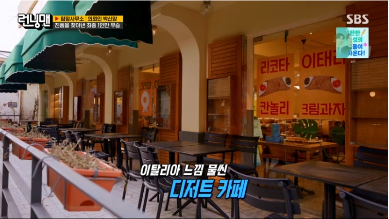 2026년 3월 22일 일요일 오후 6시 10분 런닝맨 795회 방송에서는 탐정사무소, 진품을 찾아서 박신양 편이 방영됩니다. 배우 겸 화가 박신양의 전시쑈가 펼쳐지는 전시회에서 런닝맨 촬영이 진행되었어요. 탐정사무소 : 의뢰인 박신양 진품을 찾아낸 최종 1인만 우승을 위해 종로 디저트 카페를 찾아갑니다. 런닝맨에 나온 종로 디저트 카페를 찾아보았어요. 이탈리아 느낌 물씬 풍기는 디저트 카페